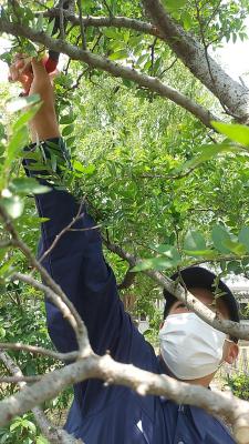本日はムシムシした暑さで汗びっしょりになった生徒たち。収穫と除草が終わった後には、園芸・造園の系列生徒が作った特製梅ジュースを頂きました。実習後の梅ジュースは格別で「おいしい、おいしい」と飲んでいました♪来週の収穫も楽しみです!