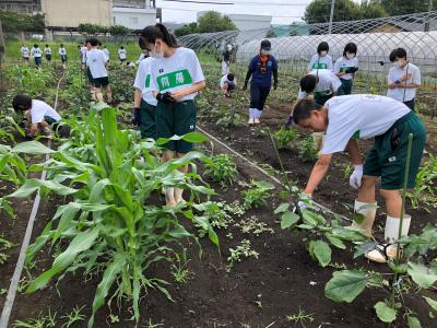 夏休みに入りましたが、農業環境・生物活用を受講している生徒は各自収穫に来ます。