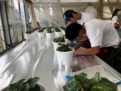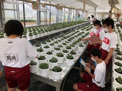 3年次生の選択科目「ガーデニング」でも管理を始めました。1人5鉢ずつ管理鉢を作っているので、葉の枚数や大きさ、色などを記録しスケッチをしました。冬に美しい花を咲かせられるように管理していきたいと思います。