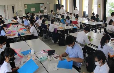 7/13(水)本校にて城東地区図書委員研修会が行われました。担当校だったため、本校図書委員で、受付から司会進行、企画の説明まで行いました。みんな緊張していましたが、最後には他校生徒と仲良くなり、笑顔で終わることができました。昨年度文化祭に作成した「エイムズの部屋」(錯覚を起こす歪んだ部屋)も好評でした!