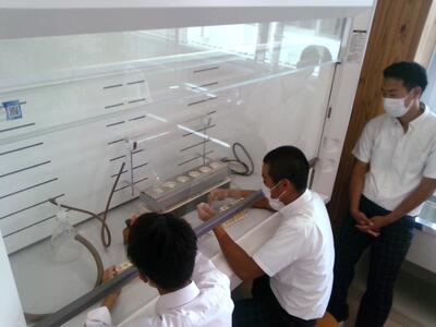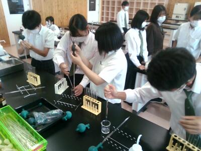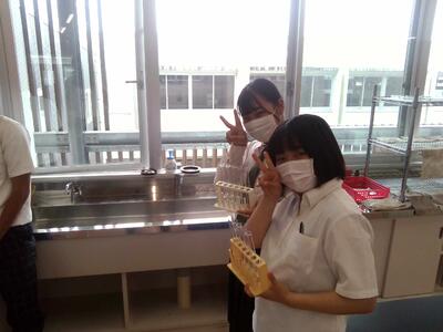 3年次生の食品化学の時間に、炭水化物の定性実験「ヨウ素デンプン反応」を行いました。