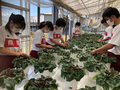 他系列からも受講できるガーデニングの授業で葉組みを行いました。初めて行う、葉組みのやり方に戸惑いながらも、園芸・造園の生徒たちにやり方などを聞きながら一生懸命取り組んでいました。11月中旬頃から販売ができるように生徒達が丹精込めて栽培しています。購入の際は、ホームページでお知らせをしますので、楽しみにお待ちください!