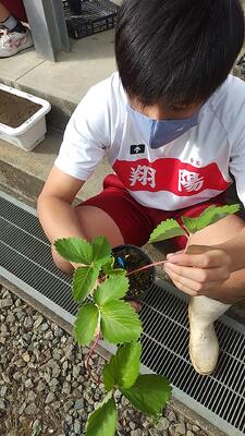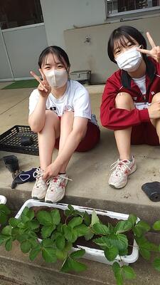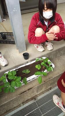3年次の生物活用の授業でイチゴをプランターに植えました!