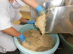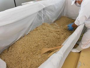 完成した麦麹と蒸した大豆、塩を混ぜ合わせ、味噌ベビーの誕生です。これから約5ヶ月成長させ、おいしいおいしい麦味噌の完成です。生徒と微生物のコラボした麦味噌、ご家庭でお味噌汁などにいかがでしょうか?