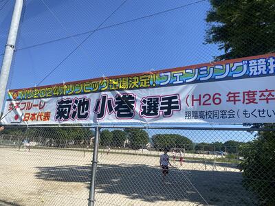 同窓会より、本校OGの菊池小巻選手(H26年度卒)のパリオリンピック出場を記念して、本校正門横に横断幕を設置しています。ぜひ、ご覧ください