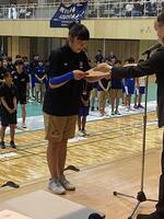 校長先生からは激励の言葉が贈られ、当時の監督 太田健二先生・森美奈子先生を交えて、学生時代の思い出を語りながら対談されました。