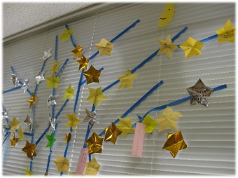 図書委員で星型☆の短冊に願いごとを書いて館内に飾っています!