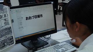 3年次生の総合的な学習の時間では、肥後おおづ観光協会からの依頼でおおづ日曜市の案内チラシを作成しました。7月21日(日)に大津町役場北側駐車場にて行われるおおづ日曜市には、翔陽高校の商業系列でも出店を予定しております。
