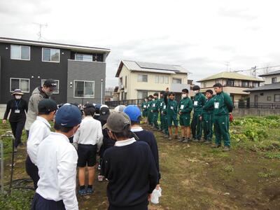 室小学校の生徒と種まきを10月12日に行い、大きくなったので、収穫体験を行いました