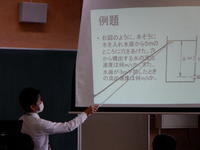 3週間の教育実習の総まとめとして、『原動機(3年次)』の研究授業が行われ、授業では「トリチェリの定理」の導き方や計算を分かりやすく丁寧に説明後、実験を実施し、生徒たちにしっかりと考えさせ、定着を図る授業でした。