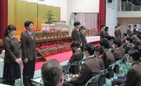 式には各部活動の代表者、出場個人生徒、そして顧問の先生方が参加されました。 同窓会長 今村 様より激励の言葉をいただき、それぞれが全国大会に向けて力強い決意表明を行いました。最後に、校長先生からお礼の言葉が述べられました。翔陽生は各分野で輝いています。