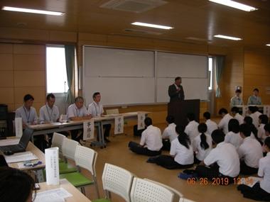 大津町企業連絡協議会主催で「大津町企業ガイダンス」が開かれ、地元の16事業所から社会人になるための心構えを教わりました。
