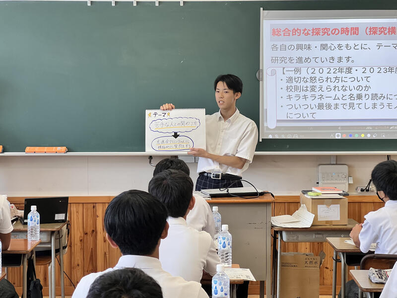 生徒たちは真剣にクラスの友人の発表を聞いていました。