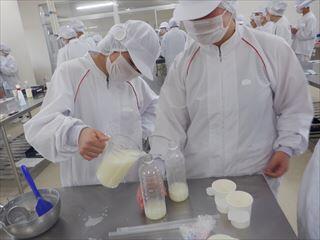 3年次食品製造βの授業で、『手作りヨーグルト』を作り、それを使って『酸乳飲料』を製造し持ち帰りました。
