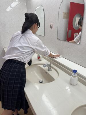 美化委員会では「校内を綺麗にしよう」を目標に、委員会活動後、講義室棟のトイレや、ゴミステーションの掃除を月に1度行っています