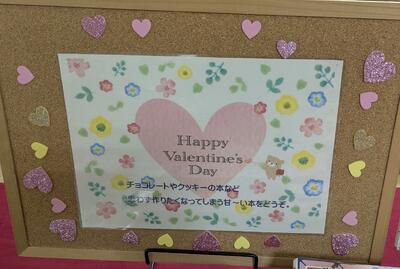 2月といえばバレンタイン。簡単にできるお菓子やチョコレートづくりの本を2年次図書委員が展示してくれました。