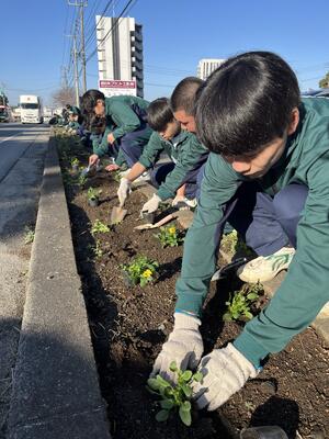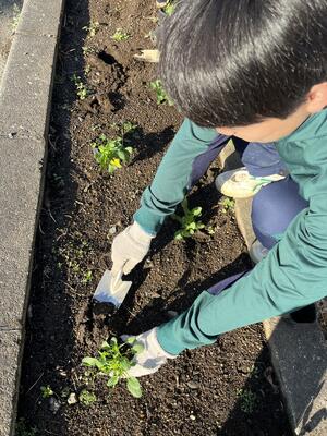 2年次の学校設定科目「グリーンデザイン」でビオラの定植を行いました。