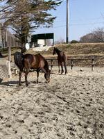 今まではあんまりしていなかったのですが、馬を一緒に放牧してみました。