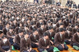 終業式では、校長から今年度の目標の「①自ら気づき、考え、行動する②5S活動の実践③学業の精励」を次年度も引き続き実践するように式辞がありました。
