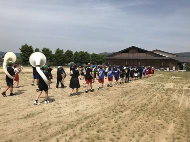 熊本県総文祭パレードに向け、令和元年5月5日(日)大津高校・阿蘇中央高校と合同練習を行いました