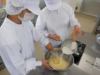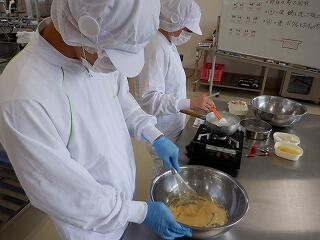 3年次生の食品製造・総合実習の授業で、乳加工実習の第1弾、「アイスクリーム」を製造しました。