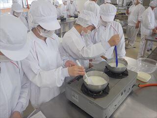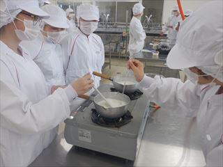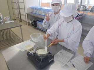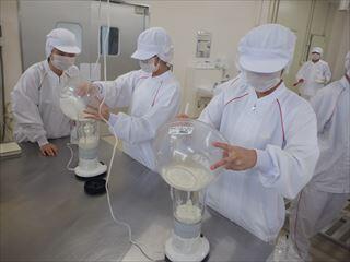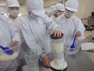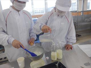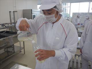 3年次食品製造βの授業で、『手作りヨーグルト』を作り、それを使って『酸乳飲料』を製造し持ち帰りました。
