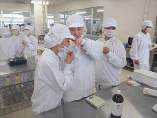 原材料に大量の砂糖を使います。それを見た生徒は、少し冷や汗(-_-;)