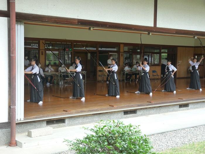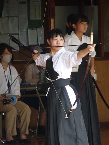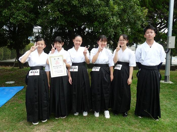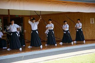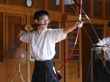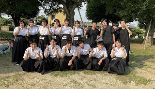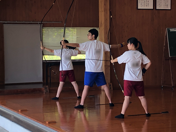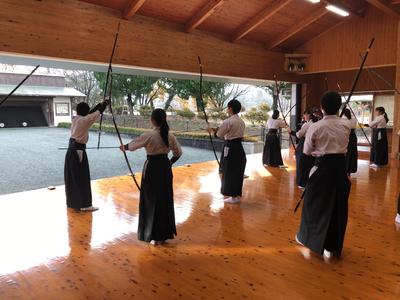 私たち弓道部は、1年生9名、2年生13名、3年生6名の計28名(内男子19名、女子9名)で活動しています。平日16:50~18:00、土曜日8:50~11:00に、大津町総合運動公園弓道場で練習しています。部員の多くが高校から始めた人ばかりです。先輩から後輩へ教え合いながら楽しく活動しています。昨年の高校総体では女子個人で6位入賞、1年生大会では女子個人において5位入賞しています。また、男子では国体強化選手に選ばれるなど優秀な成績を収めています。矢が的を射抜く爽快感を皆さんも味わってほしいと思います。一緒に弓道を楽しみましょう!!!!