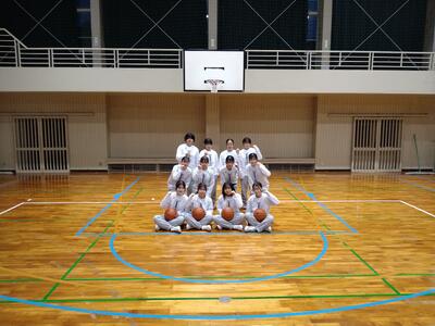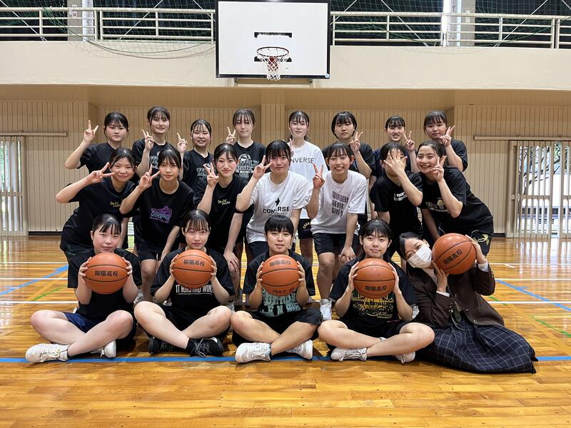 女子バスケットボール部は、顧問の岩下先生、今村先生、米村先生、後藤先生のご指導のもとマネージャーを含め20人で日々活動しています。
