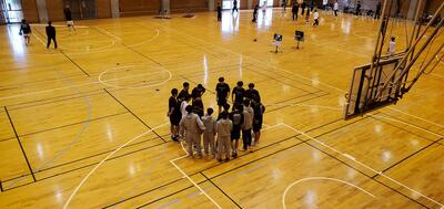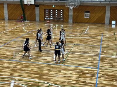 活動時間は日によって違いますが、体育館で行っています。平日4日のうち、外練1日、土日はどちらか1日練習しています。楽しくバスケをしながら礼儀作法なども身に付くことができます。公式試合「まずは1勝!!」を目標にみんなで頑張っています。初心者の人もいます。ぜひ入部してください!マネージャーも大歓迎です!