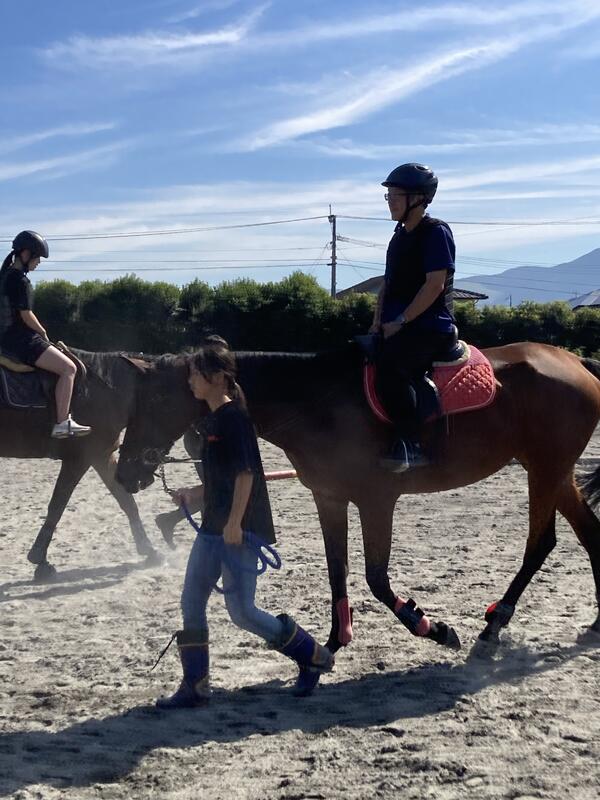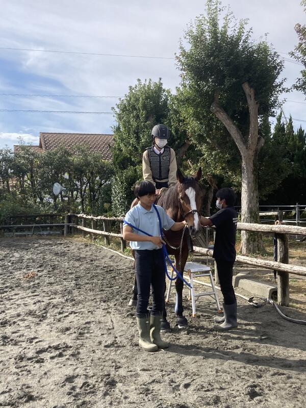 馬術部は唯一、動物をともに競技をする素晴らしいスポーツです。大きい馬を見ると最初はびっくりするかもしれませんが、部員のほとんどが高校から馬術を始めています。土日、春休み、夏休み、冬休みは当番制にして活動しているので「馬術部は休みがない」ということはありません。むしろ他の部活より休みは多いと思います。自分の時間をしっかり確保できます。活動場所は、野球場奥にある厩舎です。馬術部はこれまで、数々の大会で優勝、そして全国大会出場もしています。馬に乗らないでお世話だけでいい人も歓迎します。少しでも気になっているなら、ぜひ入部してください。お待ちしています!!