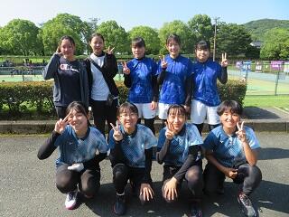 私達は2年生3人、1年生4人、マネージャー2人の計9人で活動しています。主な活動日は水・日曜日以外の5日間です。場所は翔陽高校正門横のテニスコートで活動しています。活動内容は、前衛と後衛に分かれてそれぞれに技術を磨いています。また、練習試合を通して課題を見つけその課題に取り組んでいます。4月に行われた高校生ソフトテニス選手権大会地区予選では、2年生のペアが準優勝しました。その他大会でも実績が残せるよう、頑張ります!