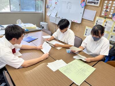 先日行われた生徒総会の反省を本日の当番生徒でまとめていました。