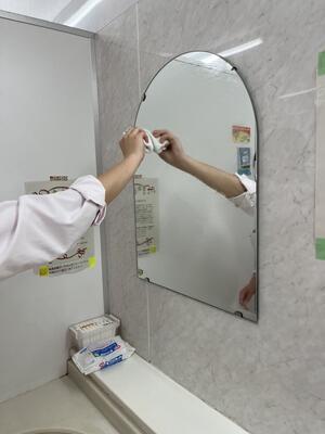 普段の掃除が10分しかないので、日頃手の行き届かない、鏡やペーパーフォルダーの上、便器の上などを中心に行いました。