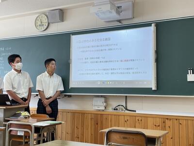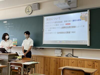 先日の授業では受講者を4つのグループに分け、「世界の政治体制」について授業してもらいました。アメリカ、イギリス、中国、ドイツの国についてそれぞれ授業しましたが、教科書や資料集を開くように指示をするグループがいたり、授業後に担当教員から受ける細かな質問にも頑張って答える様子が見られました!