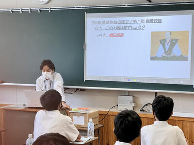 「さぁ、『孔子』と聞いてみなさんは何をイメージしますか?何を知っていますか?」「資料集の〇〇ページを見ながら進めていってくださいね」「何か質問はありませんか?」等どこかの授業で聞いたことのあるフレーズを駆使しながら、授業を進めるグループもいて、興味津々で授業を受けたり、進めたりしていました。