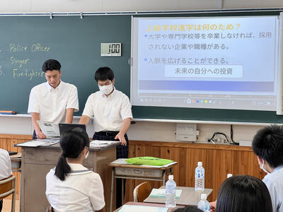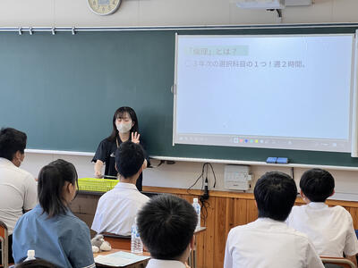 普通系列では中学生へ向けて体験授業(地歴公民・英語)と本校生徒による系列紹介を行いました。