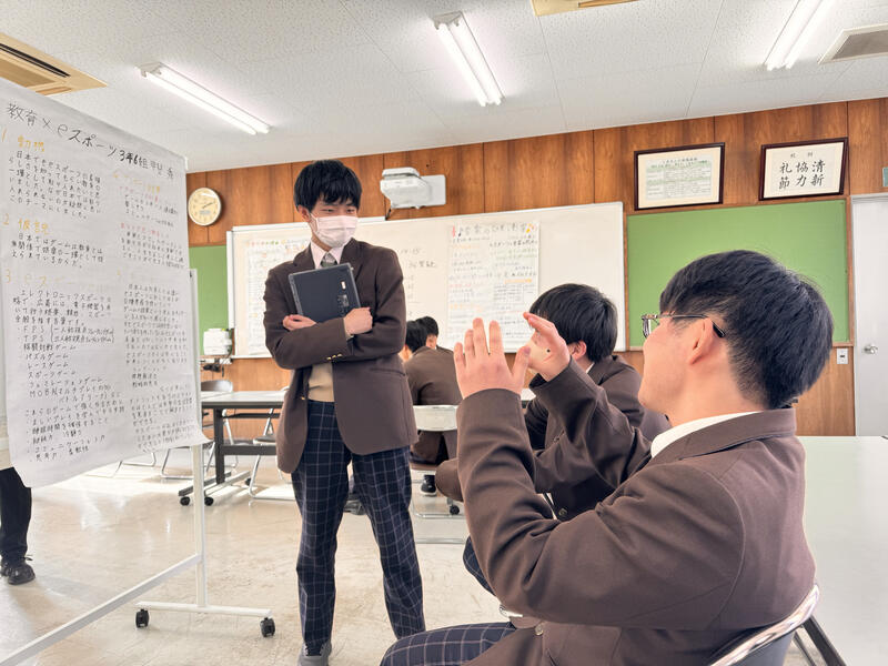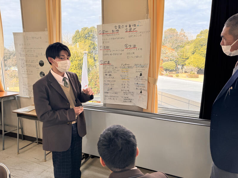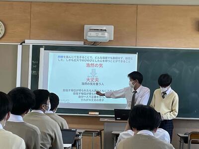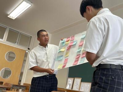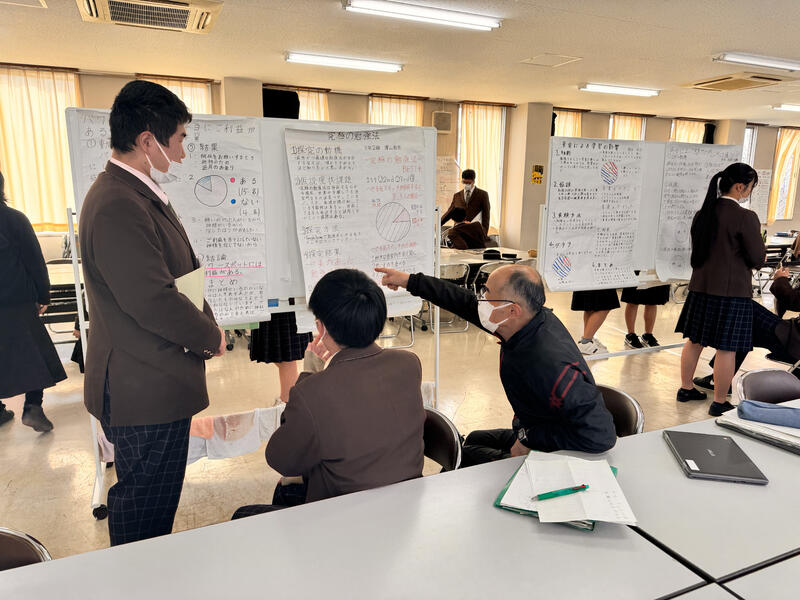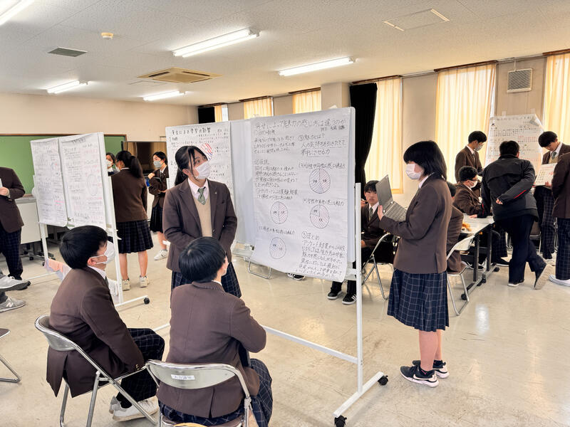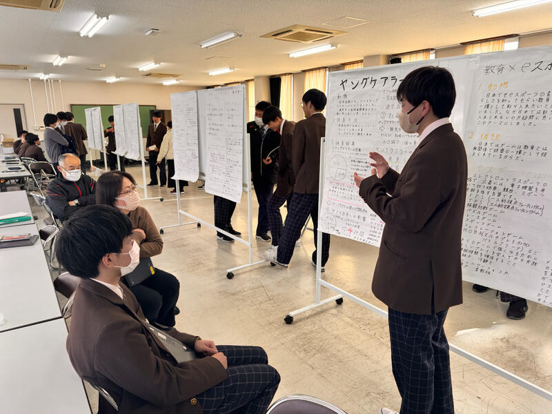 12月に行われたキャリア教育発表会の反省を踏まえて、普通系列内で生徒それぞれの探究テーマのポスターセッションを行いました。本番では、生徒同士でお互いの発表を聞く機会があまりとれなかったので、新鮮な気持ちで説明を聞いていました。質疑応答の時間も活発的に質疑が行われてとても有意義な時間となりました。