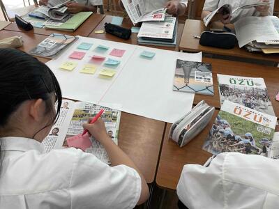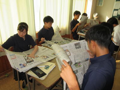 普段あまり新聞を見ない生徒も、自分の興味のある分野を中心にしっかりと読む姿が見られました。