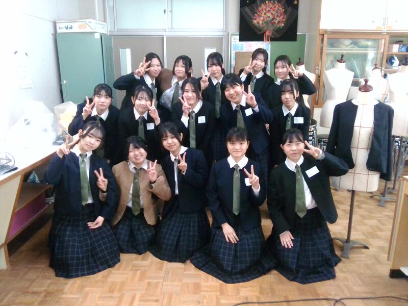 3年生の被服系専門科目「ファッション造形」で取り組んできた総裏付きジャケットが完成しました。この作品は全国高等学校家庭科被服製作技術検定1級の課題作品でもあり、これまで身に付けてきた被服製作技術の総決算ともいえます。完成までには「???」の連続で、「全然分からない~」、「今日はもう、くじけました~(-_-;)」という声もしばしば聞かれましたが、早朝から夕方遅く、休日まで返上して粘り強く取り組みました。マスクの下の笑顔、御想像ください。