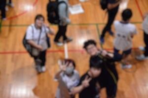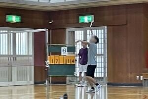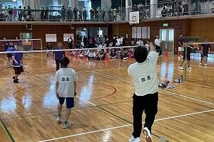バドミントンの様子です。チームごとの合計得点を競いました。