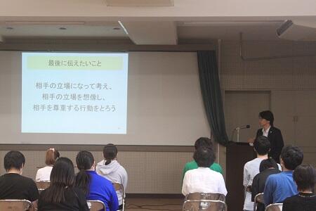 講師として、ウェルビー株式会社の山下様をお招きし、『働くための準備について』をテーマとして、働くために今できることや、働く理由、就労支援についてご講話いただきました。