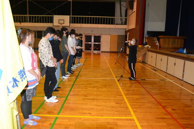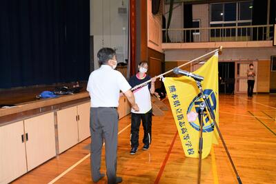 教頭先生から、選手代表へ団旗が渡されました。