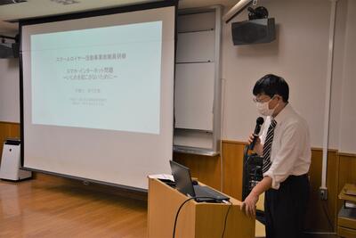高校生年代の人たちに実際に起こったトラブルをもとにした動画(KDDIスマホ安全教室)を視聴し、その「怖さ」を実感しながら、被害者にも加害者にもならないためのポイントや、万一トラブルに巻き込まれてしまった場合の対処法について学びました。