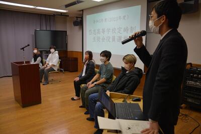 緊張した面持ちの候補者の生徒たち。