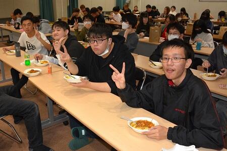 みんなおかわりして100人分のカレーを完食!
