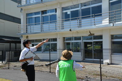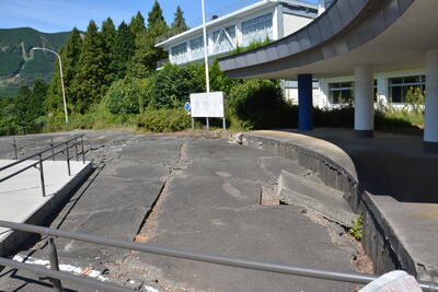 今から、対岸の「東海大学阿蘇校舎」の震災遺構に行くぞ!!