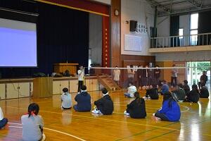次に杉本様から、水俣病の家族や裁判の期間中の生活、大学生のボランティアの方からの支援など、実体験を語っていただきました。生徒は真剣な様子で当時の状況や心境について耳を傾けていました。