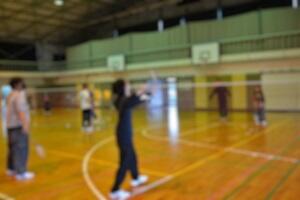 バドミントンの様子です。チームごとの合計得点を競いました。