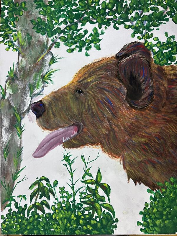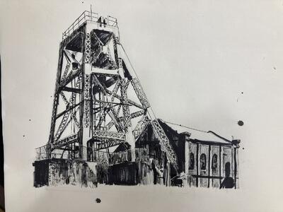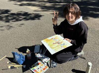 加治木君は、墨と油絵の具で描きました。書道もやっている加治木君。墨を使うのは斬新でした。